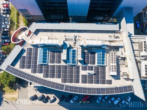 We have installed a solar power plant on the RBA bank building in Zagreb, where 900 people work, and it will produce 90,000 kilowatt-hours of electricity annually. The installed power plant has 75 kilowatt-hours, and one kilowatt of installed capacity at this location produces 1200 kilowatt-hours of electricity annually, or 1.2 megawatt-hours. If we were to use fossil fuels such as coal or oil to generate that amount of energy, we would release about 41 tons of CO2 into the atmosphere. To absorb such an amount of CO2, it would be necessary to plant 3,750 trees.