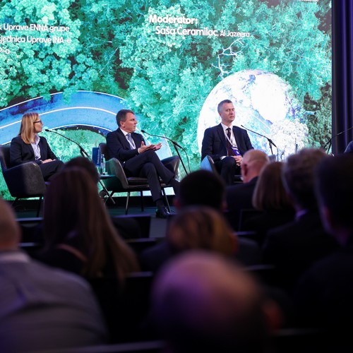 Boštjan Napast took part in a panel discussion titled "Leaders of the Energy Industry: Guidelines for the Future" alongside Zsuzsanna Ortutay, president of the management board of INA, and Petar Sprčić, management board member of HEP. They discussed the future directions of energy sector development and investments in green technologies.