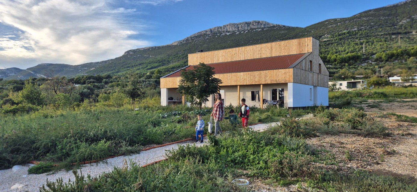 Ispred kuće smo napravili vlastiti povrtnjak za uzgajanje hrane i dječje igralište dok nam se na parkingu puni naš električni automobil. Grijanje i hlađenje su nam također na struju.