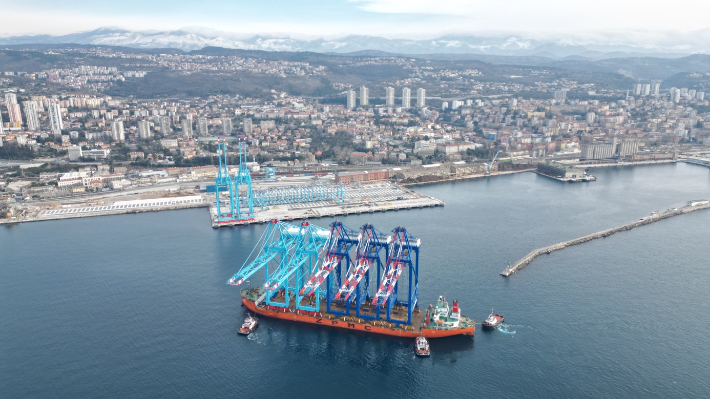Rijeka, 17. veljače 2025. – Točno četiri mjeseca nakon isporuke prvih dviju STS dizalica, na terminal Rijeka Gateway jučer su stigle preostale dvije STS (ship-to-shore) dizalice, čime je kompletirana ključna oprema na terminalu čije se otvorenje očekuje ove godine.